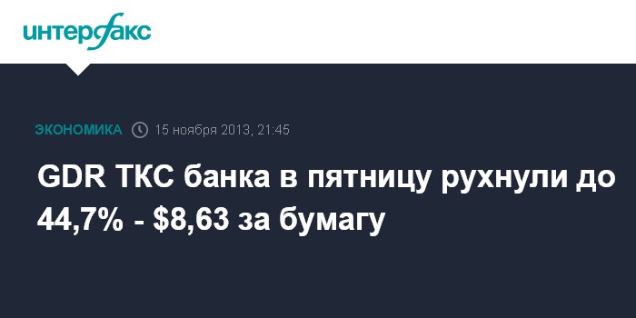 GDR ТКС банка в пятницу рухнули до 44,7% - $8,63 за бумагу