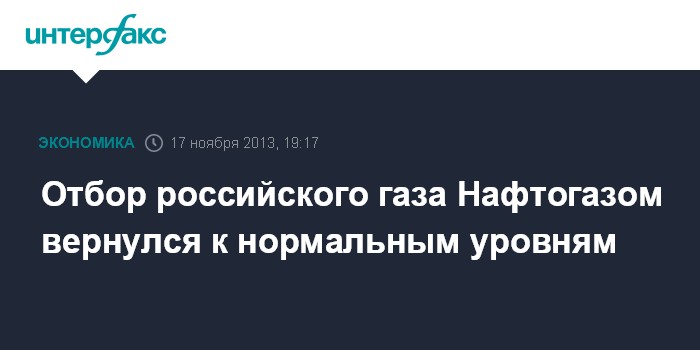 Москва. 17 ноября. INTERFAX.RU - Закупка российского газа "Нафтогазом Украины" вернулась к привычным объемам после недельного перерыва, вызванного долговым спором и желанием украинской стороны обойтись без российских поставок.