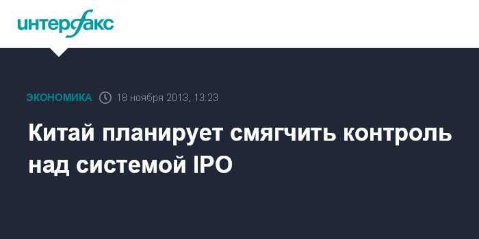 Пекин. 18 ноября. INTERFAX.RU - Власти Китая пообещали пересмотреть систему первичного публичного размещения акций в стране, что может приблизить КНР к западному, полностью рыночному механизму и подтолкнуть большее число компаний к проведению IPO, пишет The Wall Street Journal.