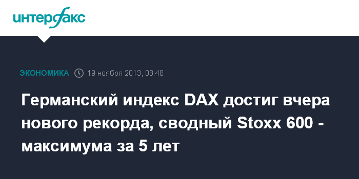 Германский индекс DAX достиг вчера нового рекорда, сводный Stoxx 600 - максимума за 5 лет