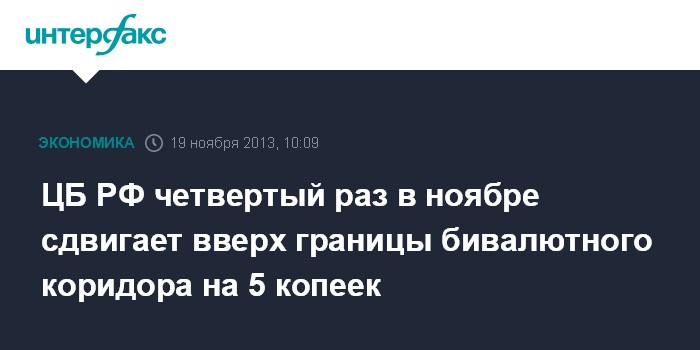 ЦБ РФ четвертый раз в ноябре сдвигает вверх границы бивалютного коридора на 5 копеек