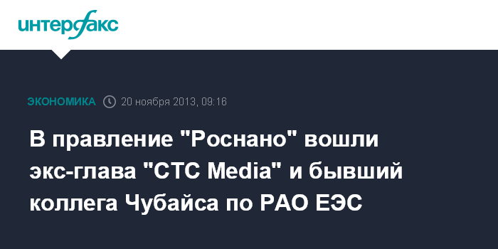 В правление "Роснано" вошли экс-глава "CTC Media" и бывший коллега Чубайса по РАО ЕЭС