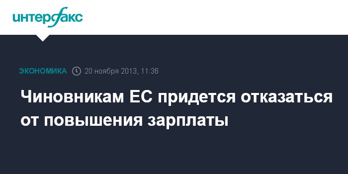 Лондон. 20 ноября. INTERFAX.RU - Чиновники Европейского союза и сами пострадали от мер жесткой экономии, которые были навязаны ими европейским гражданам: теперь сотрудникам и руководству европейских ведомств придется отказаться от предпринятого два года назад повышения зарплат, пишет Financial Times.