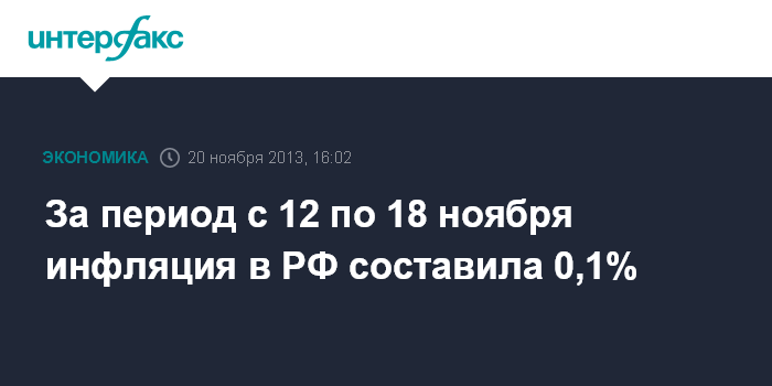 20 ноября. FINMARKET.RU - За период с 12 по 18 ноября 2013 года потребительские цены в России выросли на 0,1%, сообщает Федеральная служба госстатистики (Росстат).