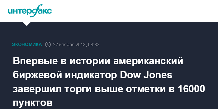 Впервые в истории американский биржевой индикатор Dow Jones завершил торги выше отметки в 16000 пунктов