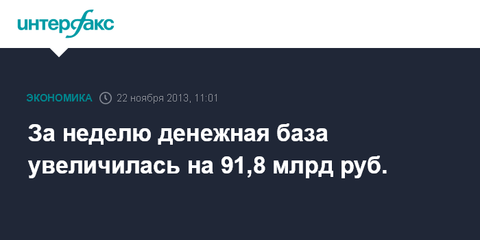 За неделю денежная база увеличилась на 91,8 млрд руб.