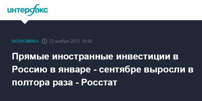 Прямые иностранные инвестиции в Россию в январе - сентябре выросли в полтора раза - Росстат