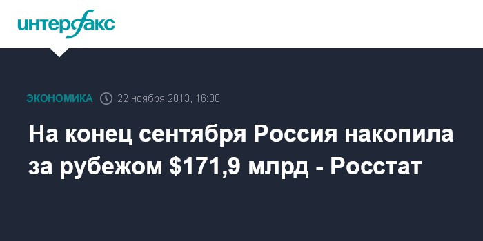 На конец сентября Россия накопила за рубежом $171,9 млрд - Росстат
