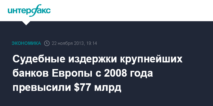 Судебные издержки крупнейших банков Европы с 2008 года превысили $77 млрд