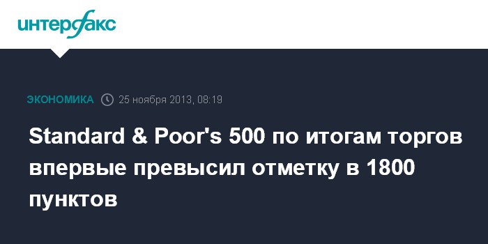 Standard & Poor's 500 по итогам торгов впервые превысил отметку в 1800 пунктов