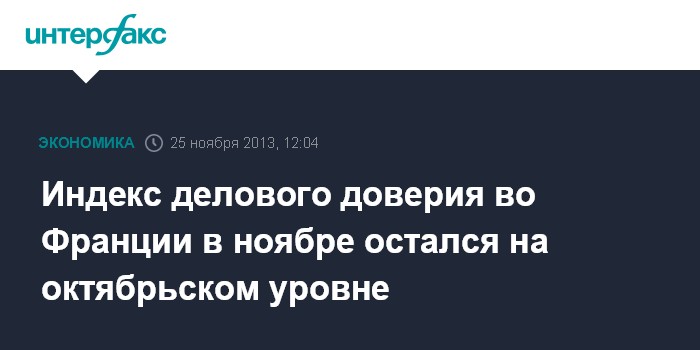 25 ноября. FINMARKET.RU - Индекс доверия предпринимателей к экономике Франции в ноябре 2013 года остался на октябрьском уровне 98 пунктов, свидетельствуют данные национального статистического управления Insee.