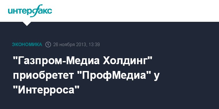 Москва. 26 ноября. INTERFAX.RU - "Интеррос" Владимира Потанина продает "ПрофМедиа" "Газпром-Медиа Холдингу".