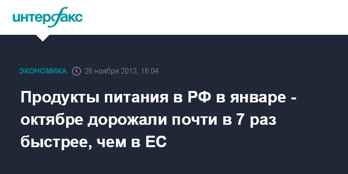 Продукты питания в РФ в январе - октябре дорожали почти в 7 раз быстрее, чем в ЕС