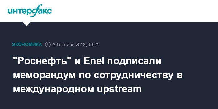 "Роснефть" и Enel подписали меморандум по сотрудничеству в международном upstream