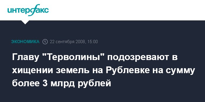 Главу "Терволины" подозревают в хищении земель на Рублевке на сумму более 3 млрд рублей