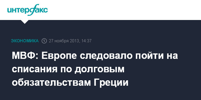 МВФ: Европе следовало пойти на списания по долговым обязательствам Греции