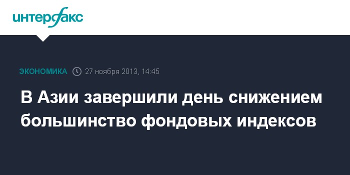 27 ноября. FINMARKET.RU - По итогам сегодняшних торгов упали большинство фондовых индексов Азиатско-Тихоокеанского региона на фоне публикации негативных статданных об изменении потребительского доверия в США, сообщает Bloomberg.