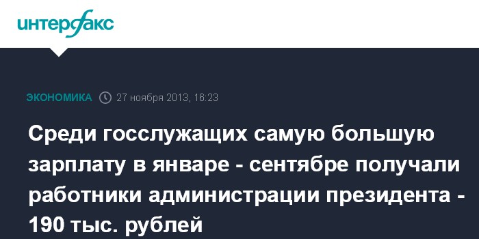 Среди госслужащих самую большую зарплату в январе - сентябре получали работники администрации президента - 190 тыс. рублей