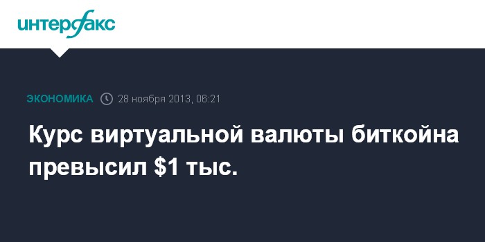 Лондон. 28 ноября. ИНТЕРФАКС - Стоимость цифровой валюты биткойна впервые превысила $1 тыс., сообщает британская телерадиовещательная корпорация Би-би-си.