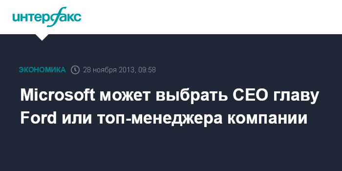 Нью-Йорк. 28 ноября. INTERFAX.RU - Совет директоров Microsoft Corp. намерен при выборе нового CEO сфокусироваться на рассмотрении кандидатуры гендиректора Ford Motor Co. Алана Мулалли и курирующего облачные и корпоративные сервисы в самой Microsoft Сатьи Наделлы, сообщает агентство Bloomberg со ссылкой на информированные источники.