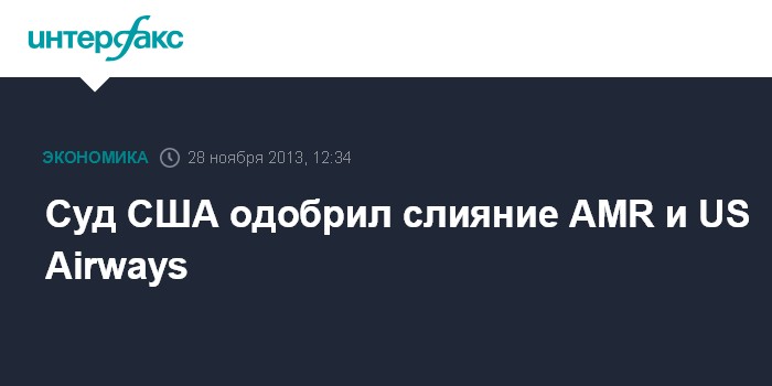Нью-Йорк. 28 ноября. INTERFAX.RU - Американский суд в среду одобрил план выхода из банкротства AMR Corp., владельца авиакомпании American Airlines, за счет слияния с другим авиаперевозчиком US Airway Group Inc., сообщает MarketWatch.