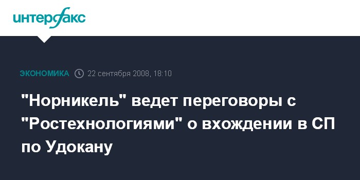Москва. 22 сентября. INTERFAX.RU - ОАО "ГМК "Норильский никель" ведет переговоры с госкорпорацией "Ростехнологии" о возможном вхождении в консорциум по разработке Удоканского месторождения меди в Читинской области и обсуждает условия совместной работы, сообщил "Интерфаксу" гендиректор "Норникеля" Владимир Стржалковский.