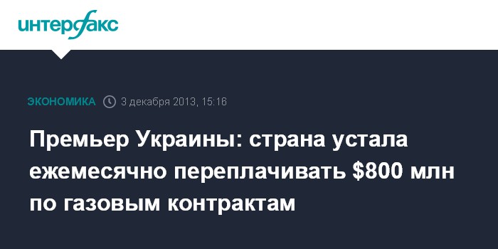 Киев. 3 декабря. INTERFAX.RU - У Украины заканчиваются финансовые силы дальше выполнять заключенные в 2009 году газовые контракты, заявил премьер-министр Украины Николай Азаров.