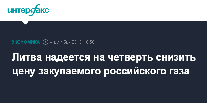 Литва надеется на четверть снизить цену закупаемого российского газа
