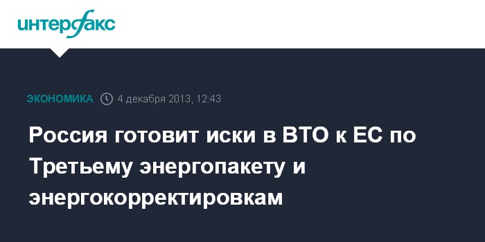 Россия готовит иски в ВТО к ЕС по Третьему энергопакету и энергокорректировкам