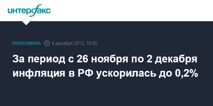 За период с 26 ноября по 2 декабря инфляция в РФ ускорилась до 0,2%