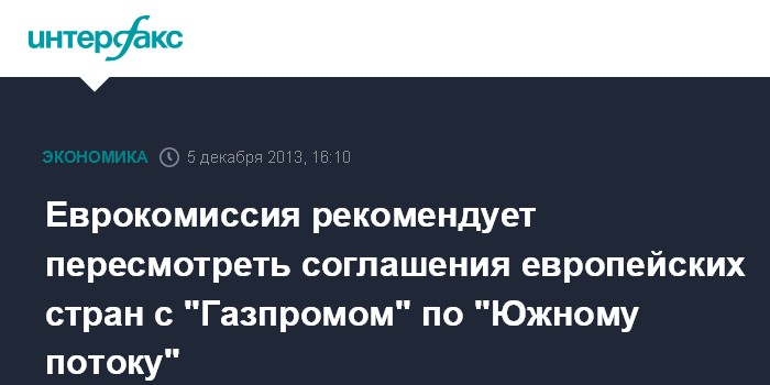 Брюссель. 5 декабря. INTERFAX.RU - Некоторые базовые принципы газового рынка Евросоюза не отражены в двусторонних соглашениях "Газпрома" по газопроводу "Южный поток" с рядом стран, которые он пересечет, и им рекомендовано пересмотреть эти соглашения, заявила в четверг в Брюсселе официальный представитель Еврокомиссии Мерлене Хольцнер.