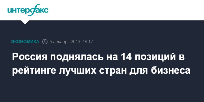 Москва. 5 декабря. INTERFAX.RU - Россия за год преодолела сразу 14 строчек в рейтинге "Лучшие страны для бизнеса" американского журнала Forbes и в 2013 году разместилась на 91-м месте из 145 - между Филиппинами и Парагваем.