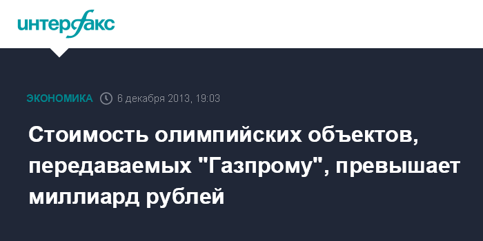 Стоимость олимпийских объектов, передаваемых "Газпрому", превышает миллиард рублей