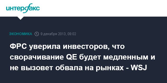 ФРС уверила инвесторов, что сворачивание QE будет медленным и не вызовет обвала на рынках - WSJ