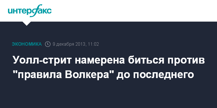 Уолл-стрит намерена биться против "правила Волкера" до последнего