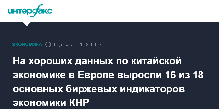 На хороших данных по китайской экономике в Европе выросли 16 из 18 основных биржевых индикаторов экономики КНР