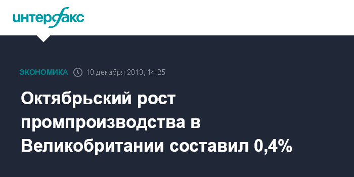 10 декабря. FINMARKET.RU - Объем промпроизводства в Великобритании в октябре 2013 года вырос на 0,4% по сравнению с предыдущим месяцем и на 3,2% относительно октября прошлого года, свидетельствуют данные британского Национального статистического управления (ONS).