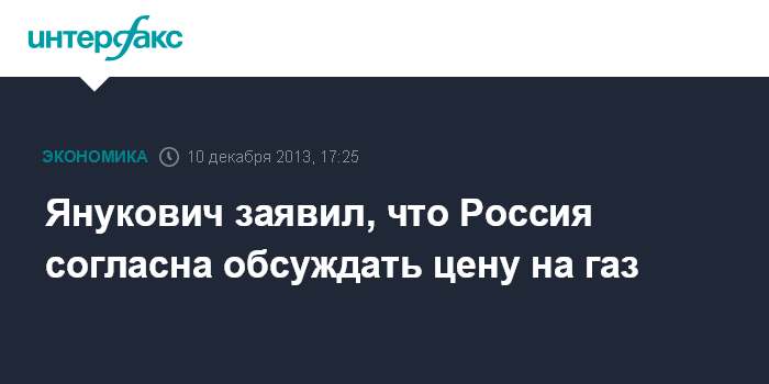 Киев. 10 декабря. INTERFAX.RU - Россия согласна обсуждать тему цены на газ для Украины, заявил президент Украины Виктор Янукович.