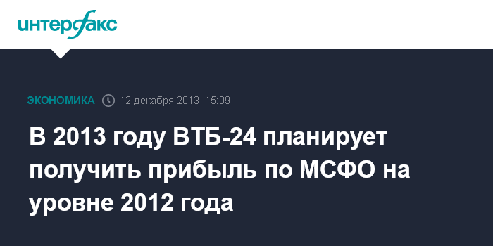 В 2013 году ВТБ-24 планирует получить прибыль по МСФО на уровне 2012 года