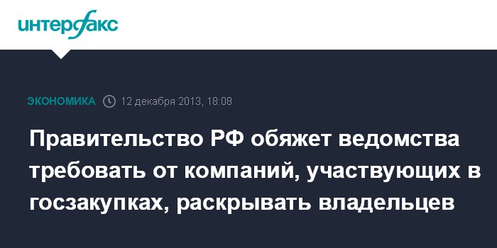 Правительство РФ обяжет ведомства требовать от компаний, участвующих в госзакупках, раскрывать владельцев