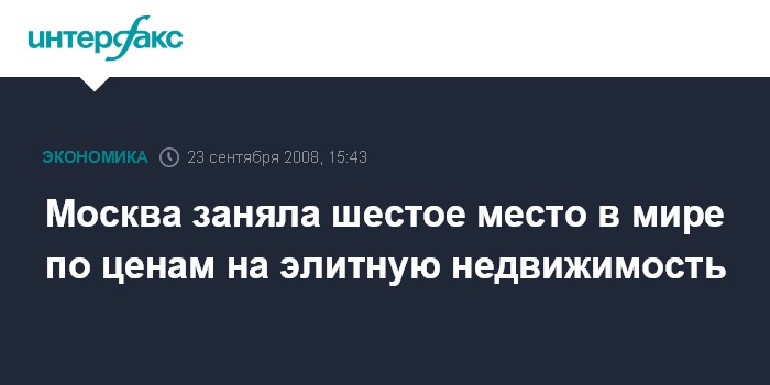 Москва входит в число 10 городов мира с самой дорогой недвижимостью, занимая 6-е место и уступая Монако, Лондону, Кап-Ферра (Франция), Куршавелю и Нью-Йорку. Средняя стоимость элитного жилья во II квартале текущего года выросла на 18% по сравнению с аналогичным периодом 2007-го и составила 17 тыс. евро за квадратный метр.