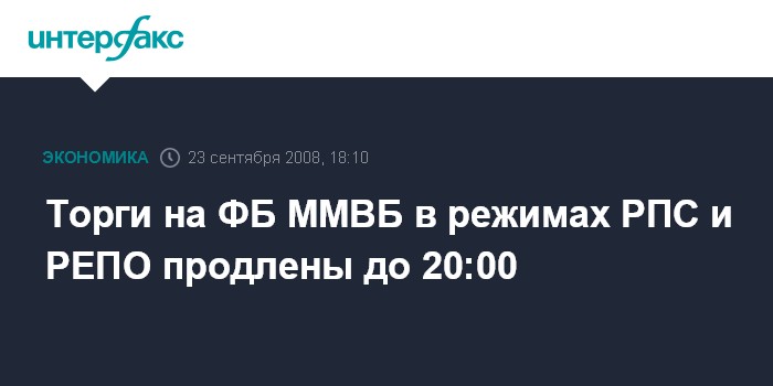 Торги на ФБ ММВБ в режимах РПС и РЕПО продлены до 20:00