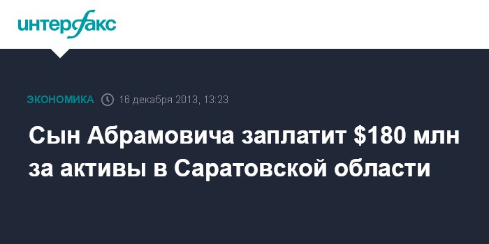 Сын Абрамовича заплатит $180 млн за активы в Саратовской области