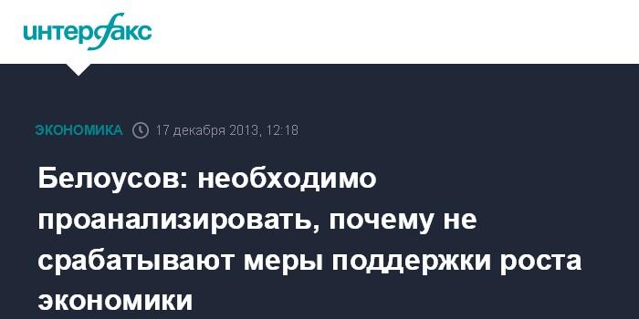 Москва. 17 декабря. INTERFAX.RU - Помощник президента РФ Андрей Белоусов считает необходимым проанализировать, "почему не работают меры поддержки экономического роста" и почему не сокращаются процентные ставки, которые тормозят инвестиционную активность.