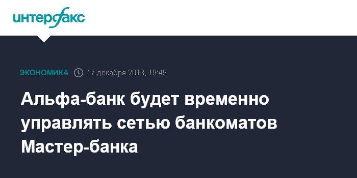 Альфа-банк будет временно управлять сетью банкоматов Мастер-банка