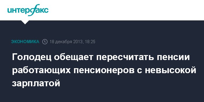 Голодец обещает пересчитать пенсии работающих пенсионеров с невысокой зарплатой