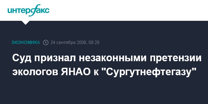Москва. 24 сентября. INTERFAX.RU - Арбитражный суд Ханты-Мансийского автономного округа (ХМАО) отменил постановление департамента природно-ресурсного регулирования и развития нефтегазового комплекса Ямало-Ненецкого автономного округа о привлечении ОАО "Сургутнефтегаз" к административной ответственности, сообщили "Интерфаксу" в судет.
