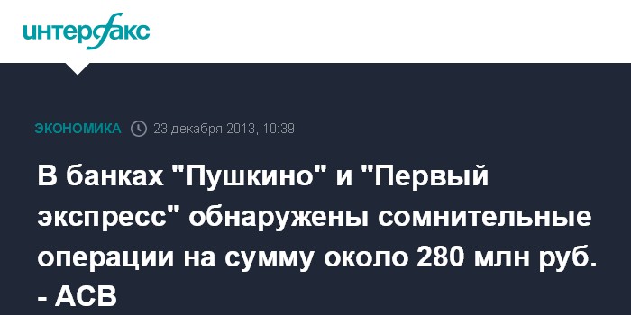 В банках "Пушкино" и "Первый экспресс" обнаружены сомнительные операции на сумму около 280 млн руб. - АСВ