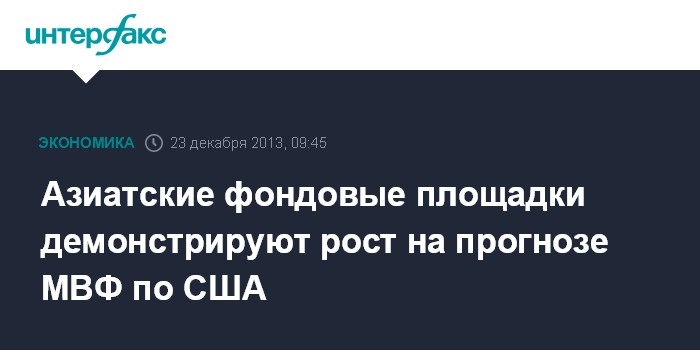 23 декабря. FINMARKET.RU - В ходе сегодняшних торгов фондовые индексы Азиатско-Тихоокеанского региона (АТР) растут после того, как Международный валютный фонд (МВФ) объявил о готовности улучшить прогнозы роста экономики США, отмечает Bloomberg.