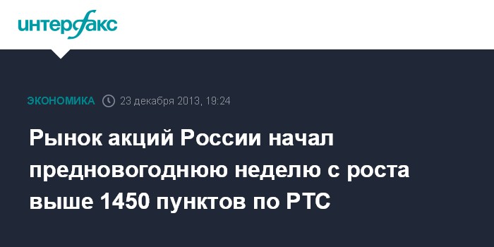 Рынок акций России начал предновогоднюю неделю с роста выше 1450 пунктов по РТС